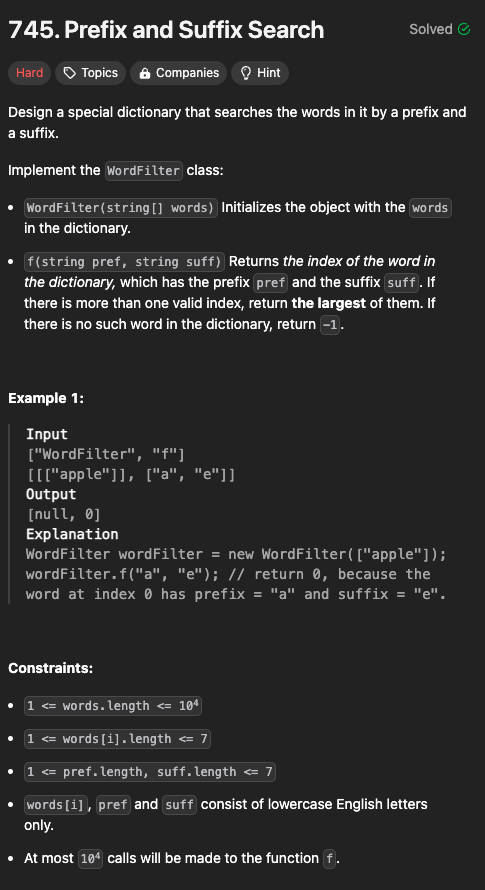 https://leetcode.com/problems/prefix-and-suffix-search/description/