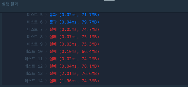 배열에 저장하기 전에 먼저 연산을하고 나머지 값만 저장하도록 하였더니 무사히 통과하였다.