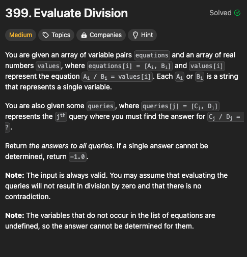 399\. Evaluate DivisionYou are given an array of variable pairs equations and an array of real numbers values, where equations\[i] = \[Ai, Bi] and val