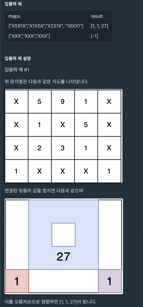 주어진 문자열 배열을 행렬로 만들어서 인접한 원소의 값들을 더해 배열로 반환하는 전형적인 dfs 문제였다.