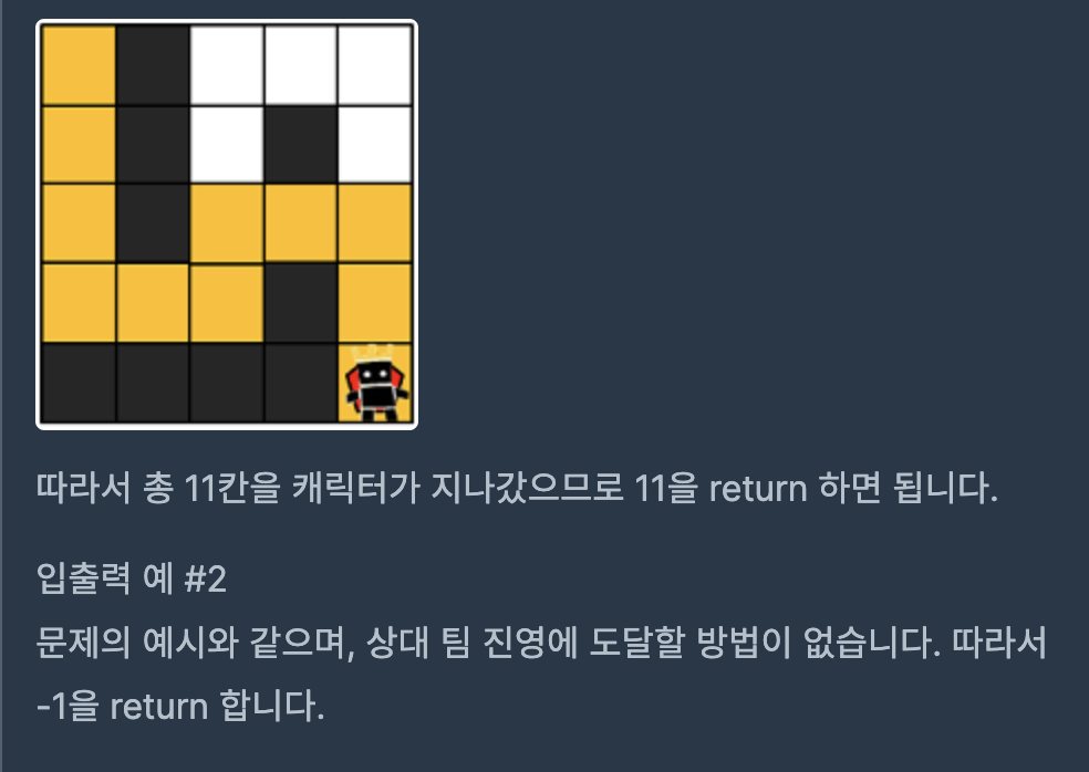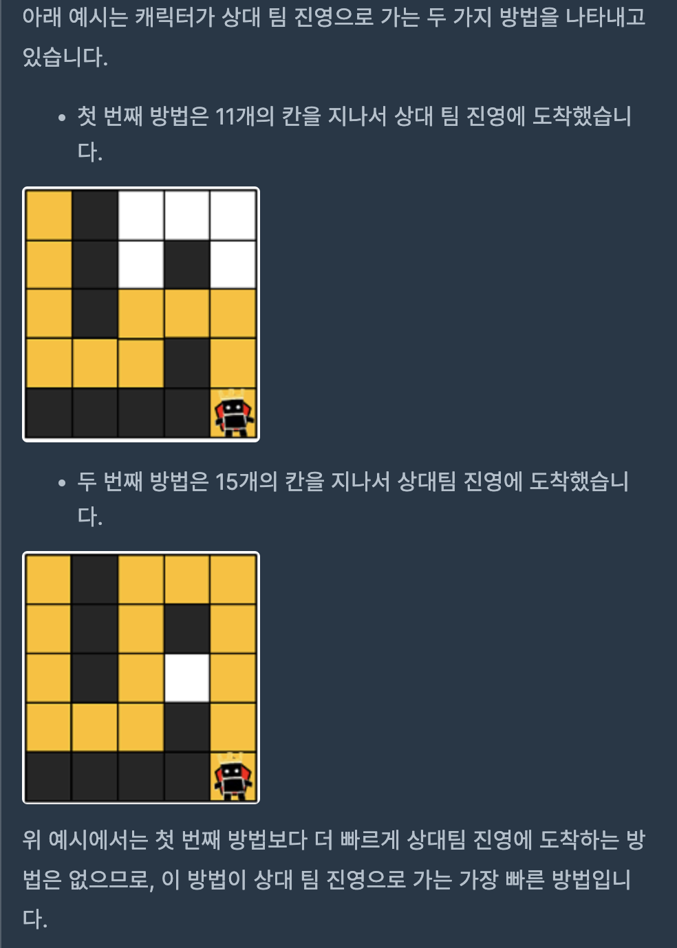 2. 목표지점까지 이동 할 수 있는 모든 경우의 수 들의 이동 칸수를 리스트에 기록하여 최소값을 답으로 반환